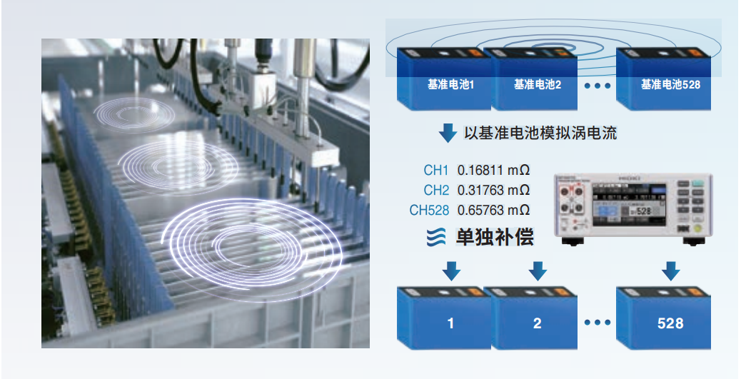 利用多通道校準(zhǔn)功能以實際電池為基準(zhǔn)正確補償渦電流,從而更準(zhǔn)確地測量。