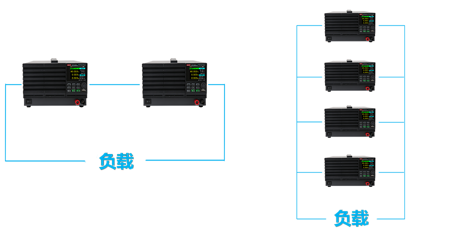 支持同型號外部串并聯(lián)輸出 最大支持4臺并聯(lián)和2臺串聯(lián) 功率、電壓和電流最大可分別擴(kuò)展至4800W 、500V和480A