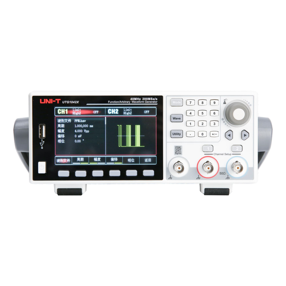 UTG1000X系列函數(shù)/任意波形發(fā)生器,采用先進(jìn)的直接數(shù)字頻率合成技術(shù)生成精確,穩(wěn)定的波形。低至1μHz的頻率分辨率,是一款經(jīng)濟(jì)型、高性能、多功能的函數(shù)/任意波形發(fā)生器。可生成精確、穩(wěn)定、純凈、低失真的輸出信號(hào),便捷的操作、優(yōu)越的性能指標(biāo)以及人性化的圖形顯示,讓您的測試更加得心應(yīng)手,是一款滿足測試、學(xué)習(xí)需求、提高工作效率的多功能設(shè)備。