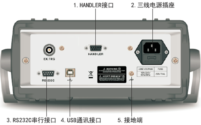 支持USB TMC,USB CDC,RS-232C串行接口和HANDLER接口, RS-232C串行接口實現(xiàn)無儀器面板的遠程控制, HANDLER接口,自動測試分選機的控制器,控制器控制儀器執(zhí)行測量并獲取比較結(jié)果信號。 USB TMC, U 盤導入或者導出,方便用戶修改、查看、備份。