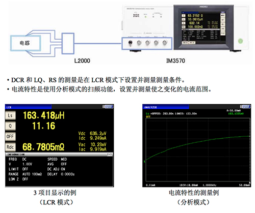 1個(gè)畫(huà)面內(nèi)顯示電感的L-Q、Rs有效值電阻)、DCR(直流電阻)測(cè)量。而且在1個(gè)畫(huà)面內(nèi)顯示含鐵芯的線圈等電流特性圖表。